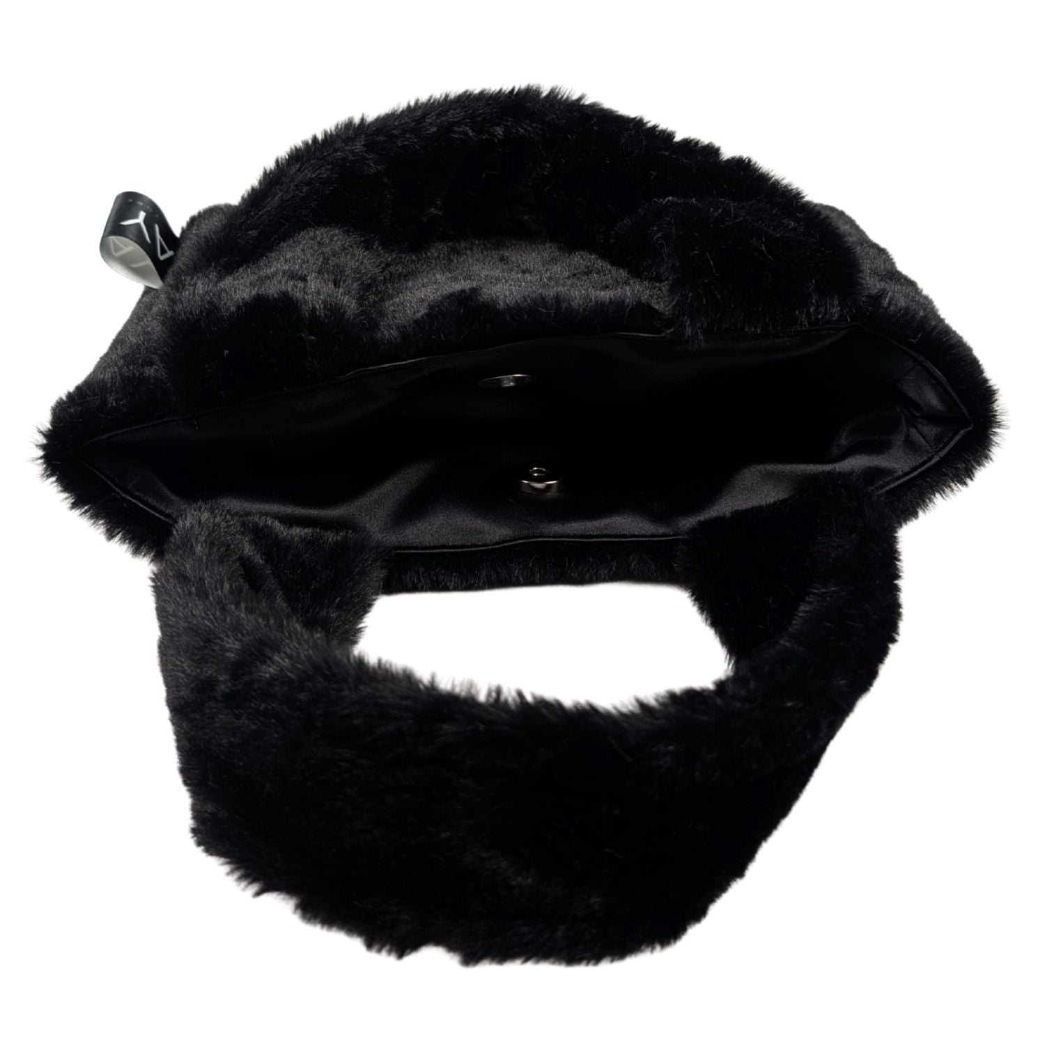Made using beautifully soft faux-fur fabric in an gorgeous black colour. With a black soft satin lining and finished with a magnetic clasp closure.